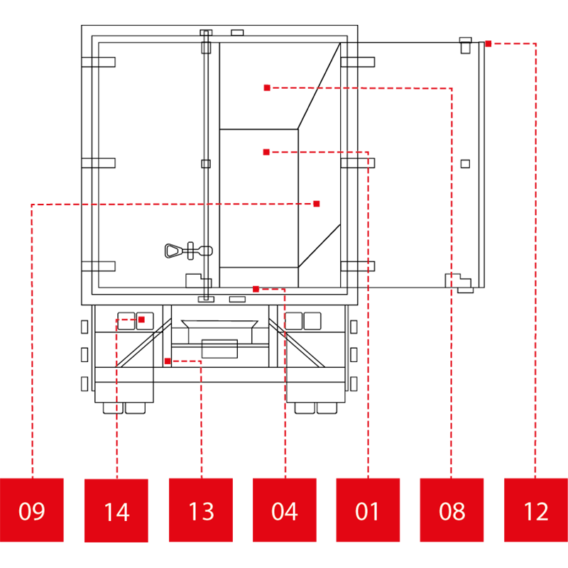 • Puertas traseras abatibles tipo “composite”, resistentes a la humedad y libres de mantenimiento, garantizando durabilidad y eficiencia operativa.